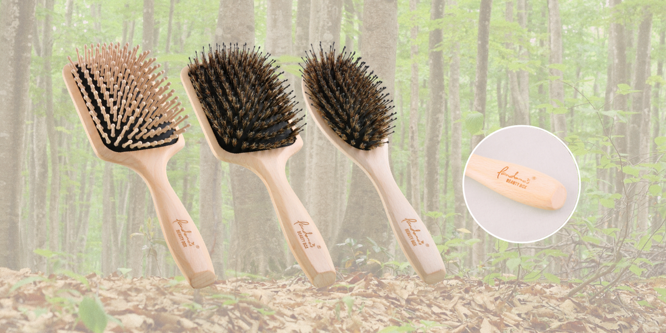ドイツ産のブナ材を使用した「ビーチウッド(ブナ材)シリーズ」。使うほど手に馴染む、天然白木のやさしい使用感です。このシリーズは、森を守る目的で作られた世界基準の森林認証制度、FSC認証済木材を使用しています。地肌に優しいウッドピンパドルブラシ、天然猪毛使用のブラシなど定番スタイルを各種取り揃えています。